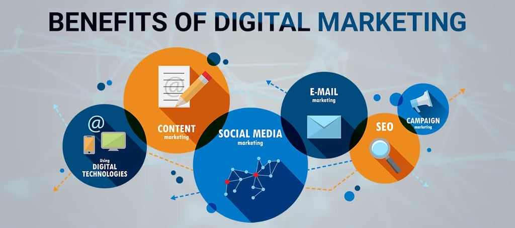 "Digital marketing offers cost-effective, targeted outreach to a global audience, ensuring better ROI. It enables real-time analytics and personalized engagement, enhancing brand visibility and customer connections.........